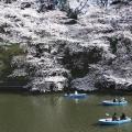田安門へと続く橋から目を下へ向けると、そこは千鳥ヶ淵。今年は、桜祭りや桜並木のライトアップは中止となっているが、千鳥ヶ淵・内堀通り・北の丸公園にある約800本の桜も満開を迎えていた。