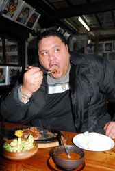 この日の会見ではモンスターボノあらため、ボノちゃんへの改名を発表。親友マーくんにギャンブルで所持金を奪われ、無一文のボノちゃんは、大食いメニュー完食の賞金目当てにステーキショップを訪れていた。