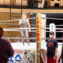 8日のマーベラス東京・新木場1stRING大会で、マーベラスの“問題児”響(ひびき)と、センダイガールズ(仙女)のDASH・チサコがシングルマッチで激突したが、響とチサコがお互いにエキサイトし、場外戦を繰り広げた結果、判定は両者リングアウトに。この結果に納得がいかないチサコは、4.29GAEAISM東京・大田区総合体育館大会で、響とハードコアマッチで決着をつけることを要求した。響は「やりたいなら土下座しろ」とチサコを挑発すると、JR新木場駅方面に猛ダッシュで逃げ去ったが、チサコは「マーベラスに戻れないぐらいミンチにしてやる」と怒り心頭。すると、10日に行われた仙女の大阪・アゼリア大正大会の試合後に響が姿を見せた。 響は作文、拡声器、DASH・チサコへのお土産のたこ焼きと、42140円の交通費領収書を手にマイクを持つと、「『心の声、マーベラス3年B組響』皆さんは、心の声を聞いた事はありますか?私はつい先日大きな問題を抱えました。それはDASH・チサコという堅物です。その人は皆さんもご存知の通り人に頼み事をする時に頼み方を知らない、とても非常識極まりない人です。ですが、私の心は広く壮大でそんな非常識極まりない人の為に、わざわざ新幹線のグリーン車に乗り、ここ大阪へとやって来てあげました。どうやら彼女の頭は私でいっぱいのようです。そこで、私は自分の心に手を当てて聞いてみました。『ハードコア大丈夫そう?痛いの耐えられる?いや〜痛いのはちょっとなぁ、えぇ〜そう?いいじゃんいいじゃん!楽しそうじゃん!あ、はい!ミンチにされてみたいです!クソぜってえ逆ミンチにしてやらぁ!怖いよぉ、あはは!』と色んな声が聞こえてきました。なので、今回はお断りさせて頂こうと思います。と、言おうと思ったんですけど、ちょっとミンチに興味があるんでやってみることにしました。あなたの声が聞こえます。『ありがとうございます!響様!』と。どういたしまして。今日はもう一度たこ焼きを食べて帰りたいと思います」と長々と独演会をした挙げ句、対戦を受諾。 チサコは「ハードコアやるってことでいいんだよね?わざわざ42,140円かけて返事しに来てくれたってことで、4月29日大田区総合体育館大会ハードコアマッチ決定しました!さっさと帰れ!」と響を追っ払った。GAEAISM事務局では、8日の大会終了時点でこのカードを決定としていたが、響の正式な返事がなかったため、このやり取りをもって正式決定と言っていいだろう。 令和の歴史に名を刻むようなハードコアマッチを見せてもらいたい。(どら増田)